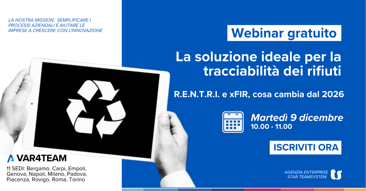 Martedì 9 Dicembre Ore 11:00 – 12:00 Scopri come affrontare la nuova finestra di iscrizione al Registro Elettronico Nazionale (RENTRI) e gestire tutti gli obblighi in modo sicuro, semplice e digitale. 💼 Per chi Imprese produttrici di rifiuti speciali (pericolosi e non), intermediari, trasportatori e consulenti della filiera ambientale. 📌 Cosa vedrai nel webinar La […]